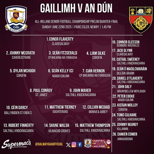 That looks a strong team with a fine bench to change it up. What changes would you make? And would you take that Conor Carroll (Roscommon) whoās actually a Galway man in goal? Iād agree with assertions here that the jury is out on PJ as Galway manager but 4 Connaught titles and a couple of All-Ireland final appearances is a big leap forward from the 2002-2019 period. Pat Havern will be a proper test for Fitzy. A step-up from mullocking for possession with Aidan Oā Shea.