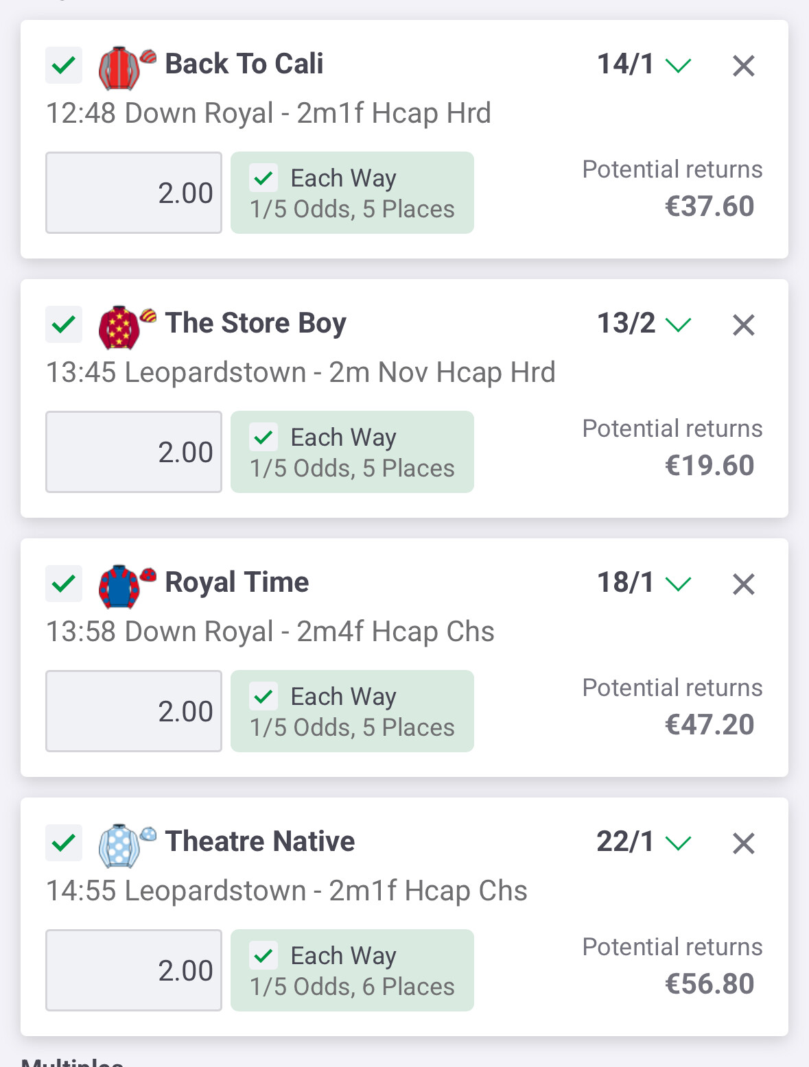 For the first time in a long time I’m heading on St Stephen’s Day to watch racing so I done two lucky 31s with the top and bottom horses the only differences.