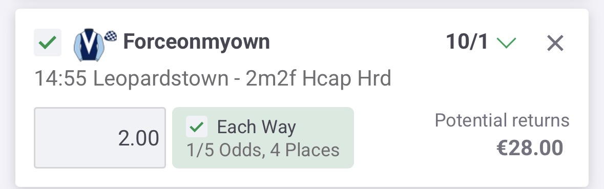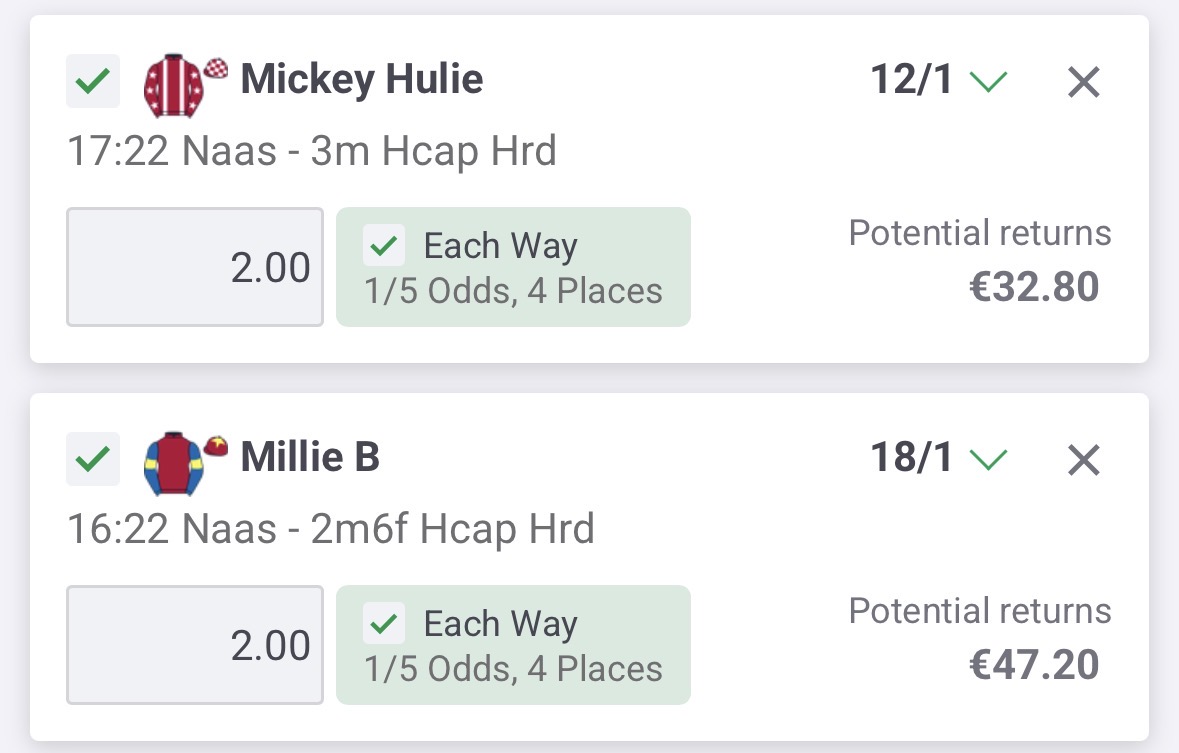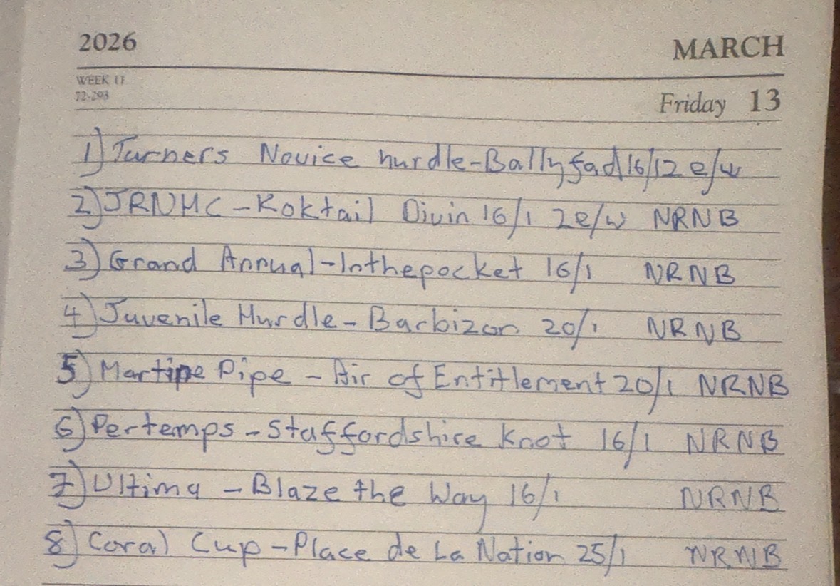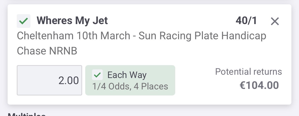 48 staked altogether ante post on 8 single bets altogether.