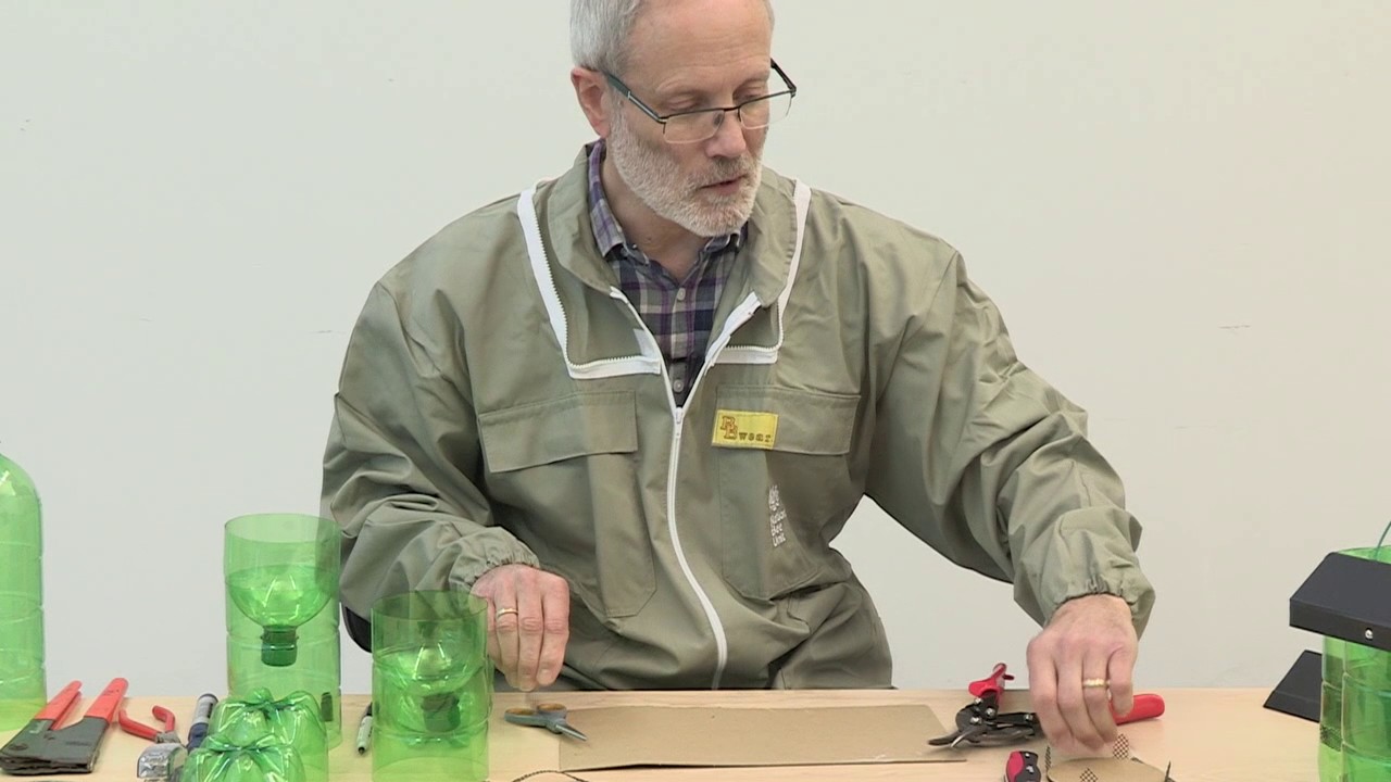 Look. You get a 1.5/2 litre plastic bottleâŚwith the cap on. About halfway up, you jam a pointed knife inâŚto make a 1"cut. Make another at a right angleâŚprise the âflapsâ in a wee bit. Fill bottle about 4/5 up with jammy water and fish, chicken, etcâŚplus a bit of apple cider vinegar.