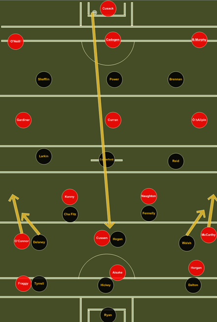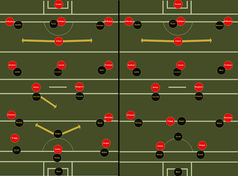 If Cork decide to go with a 3-man full forward line to keep Aisake as central as possible they could line up like this[left]: