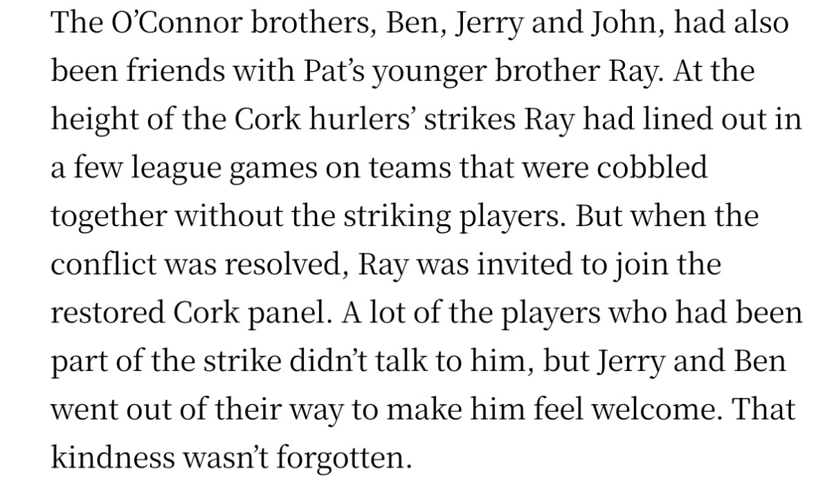 Interestingly, elements of this snobbish mindset still persist within Cork. From what I understand, Ben O’Connor’s appointment was not especially well received in some city clubs.