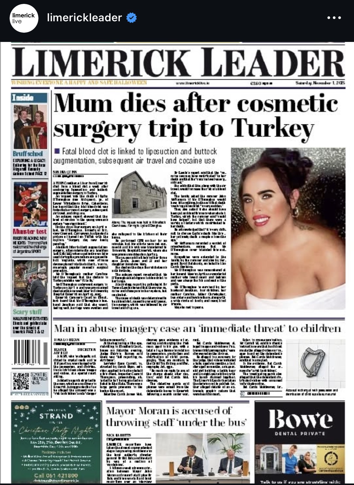 I see the Leader have been getting slaughtered over their coverage of the inquest of a woman who died after going to Turkey for liposuction and arse lift.