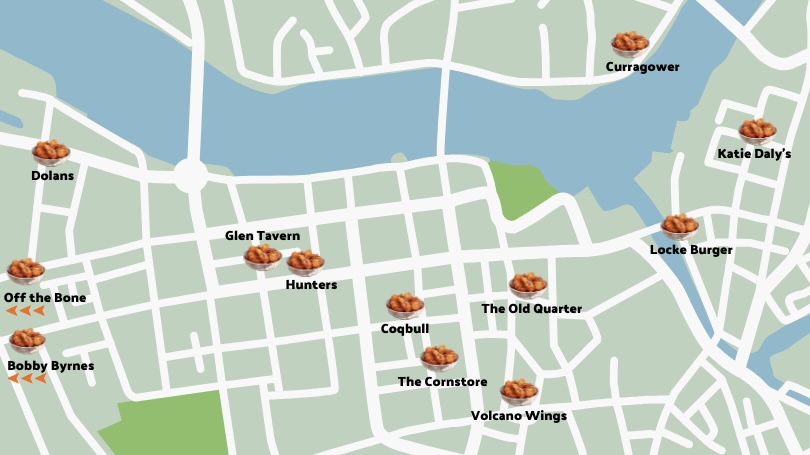 All the places in Limerick that you can buy chicken wings.