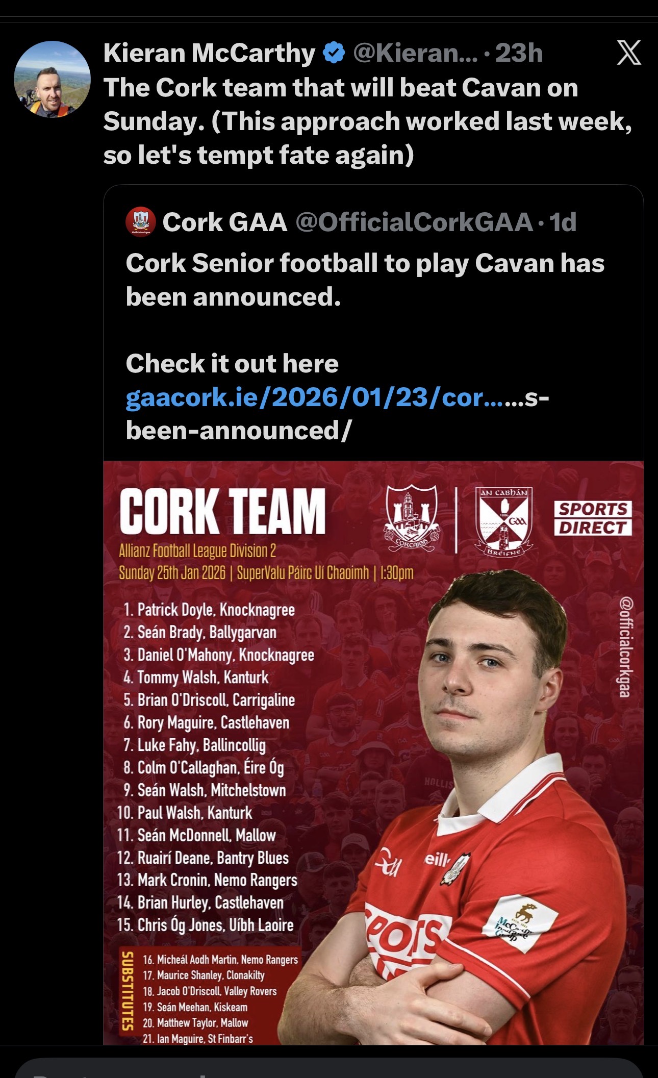 We bate Kerry in Killarney last week so here’s hoping