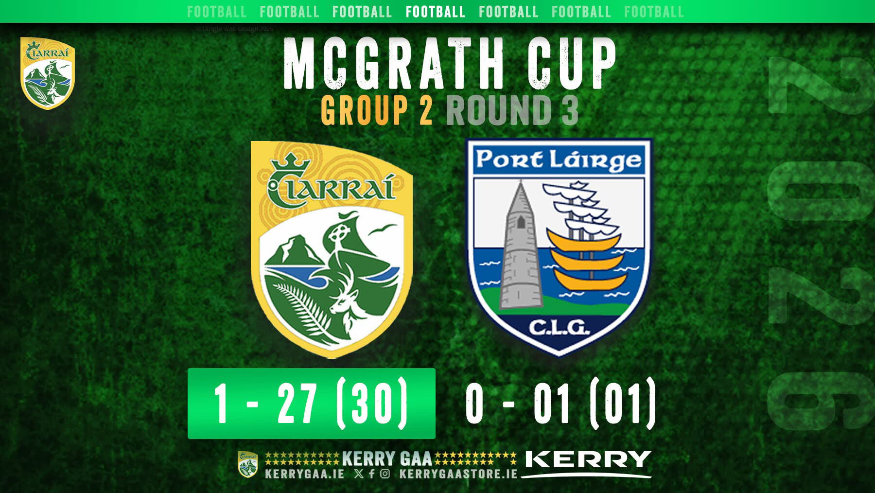Currently Waterford 0-1 Kerry 1-24 in the McGrath Cup.