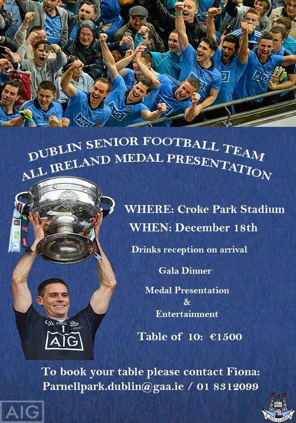 The commercial division behind the Dubs really know how to crank it up. Theyāve been milking pubs for appearances of Sam as well as shaking the bucket in the States 3 times, a night at the dogs 2 weeks ago, a night in the Conrad last week and a race day at Leopardstown in the summer. Now you know where the back room bill goes.