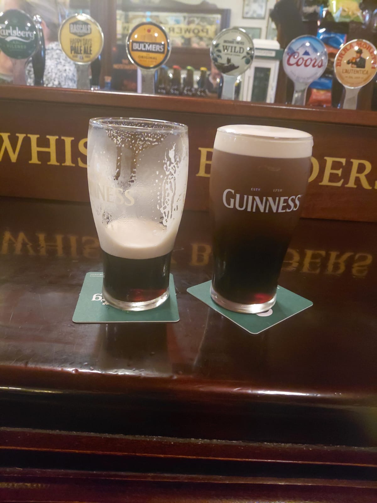 Guinness 7:50 and Bulmers 8:50 roughly