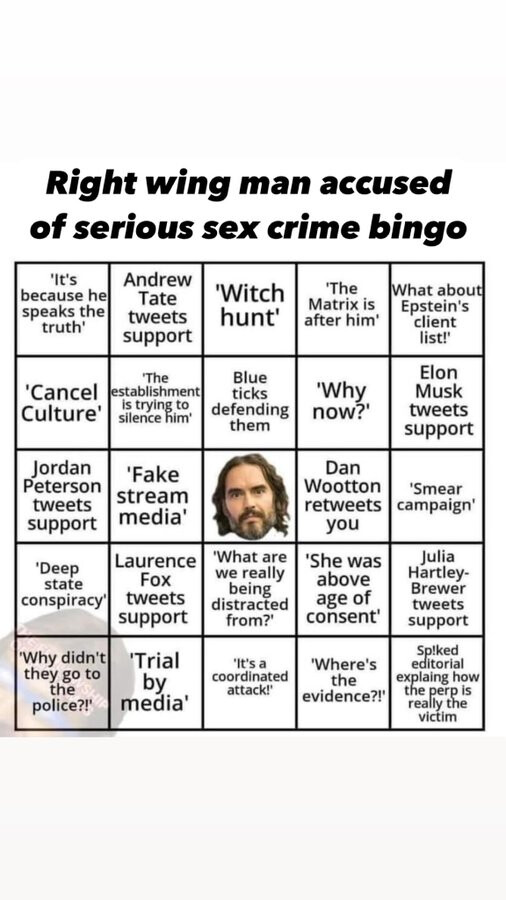 Brand had a great covid, i say all this jesus angle is to prepare for the diddy files. A former drug addict and sex addict definitely was at a party considering they were both in get him to the greek