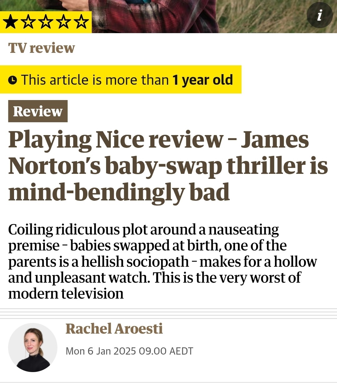 About two couples in Cornwall whose biological kids were mixed at birth and the fallout when the hospital realise a few years later. Niamh Algar puts in a tour de force in it.
